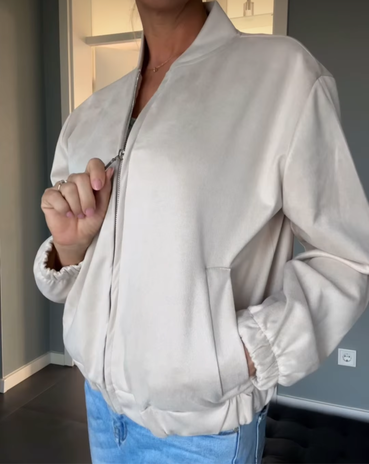 Diese Jacke ist der perfekte Begleiter für jeden Anlass. Durch ihr modisches Blouson-Design in Velourleder-Optik kann sie sowohl lässig als auch elegant getragen werden und rundet jedes Outfit ab. Sie ist auch äußerst praktisch, da sie nicht knittert und sogar in die Tasche gepackt werden kann, ohne dass dies Spuren hinterlässt. Mit dieser Jacke bist du immer stilvoll unterwegs.