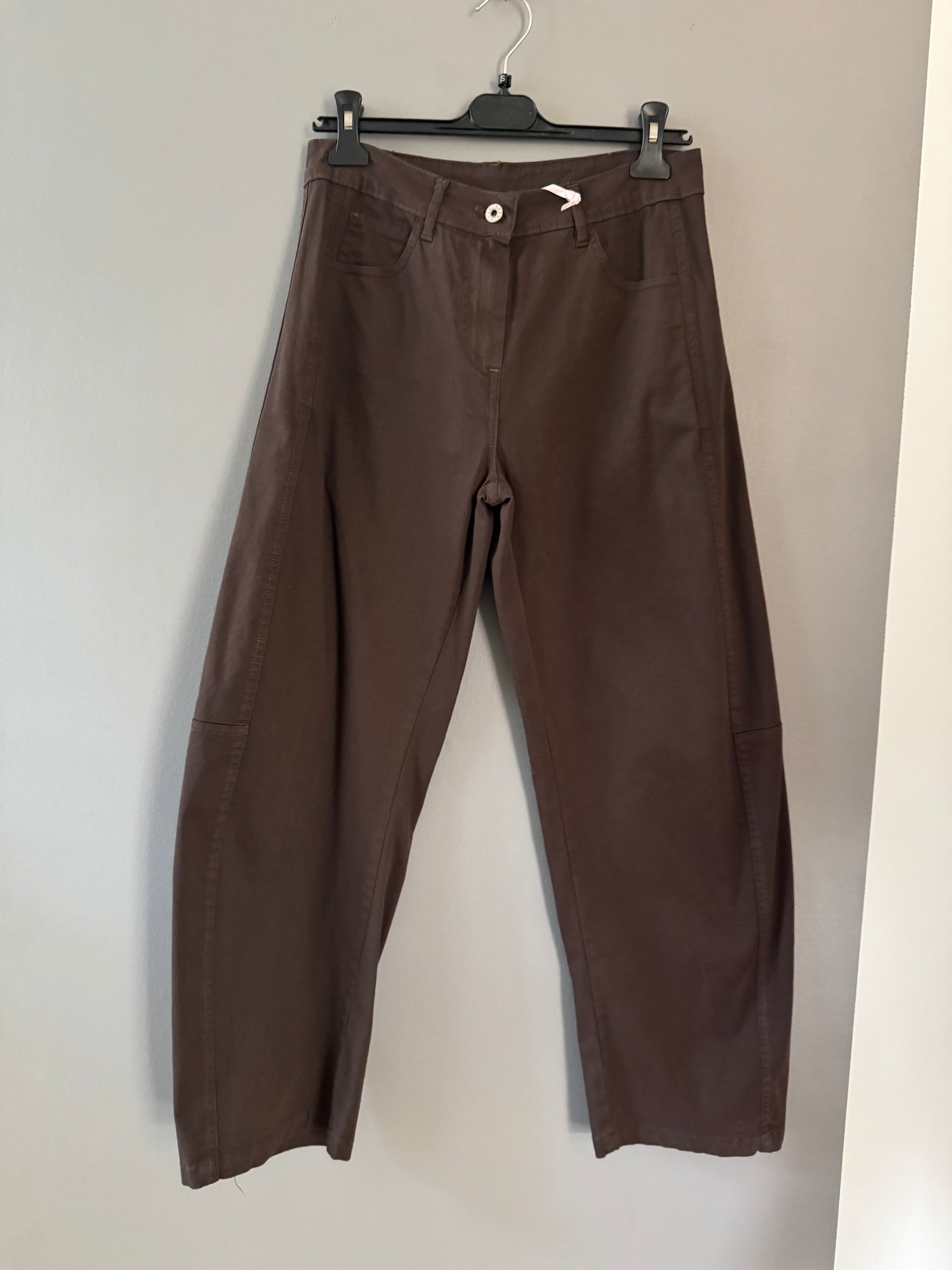 Wir bieten dir mit dieser Hose den absoluten Herbst-Trend 🍂Diese bequeme und wunderschöne dunkelbraune Bottle-Hose liegt absolut im Trend und ist ein Must-Have in diesem Herbst.