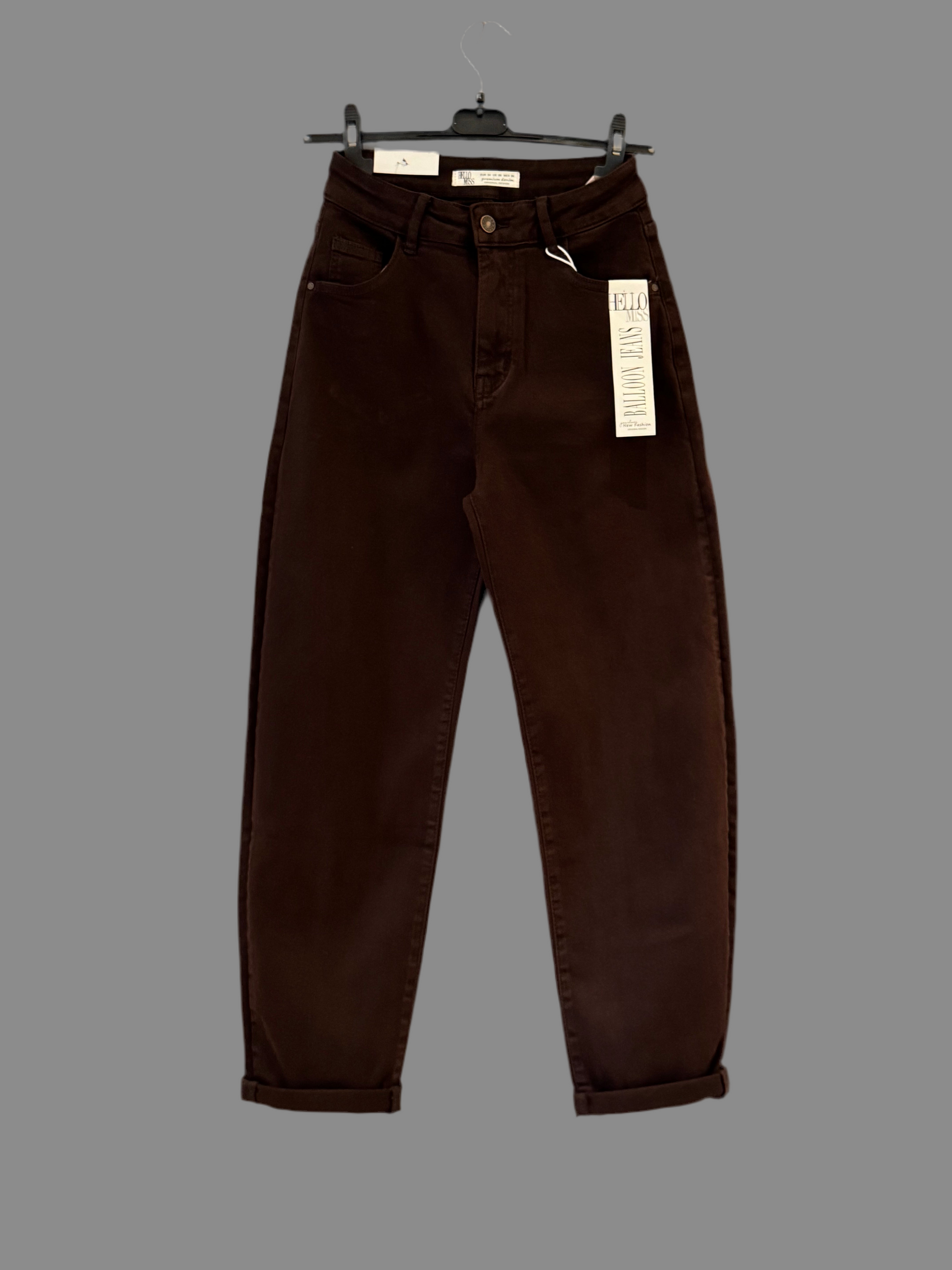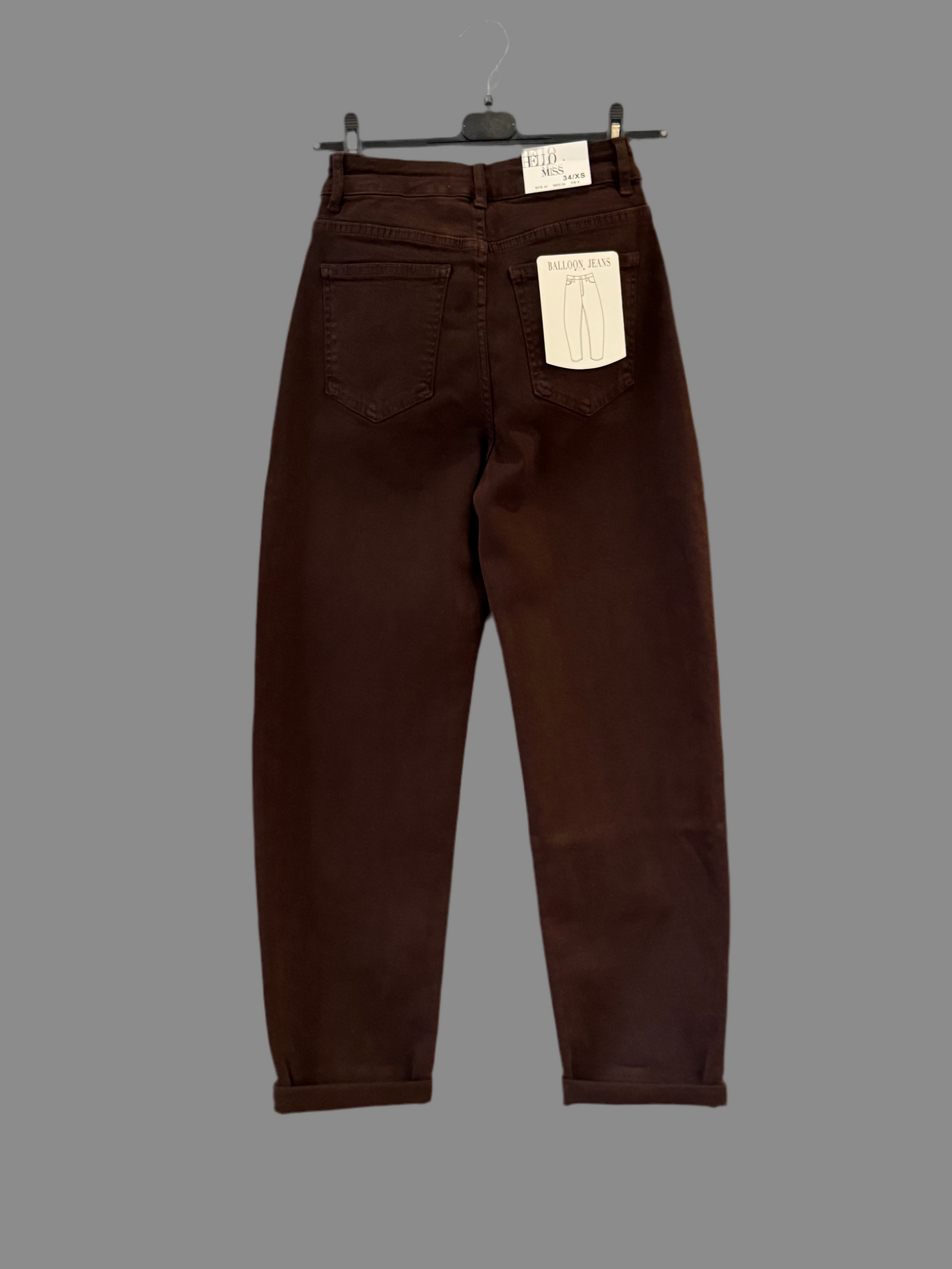 Hol dir die Hose in dunklem Schokoladenbraun! Mit hoher Taille und leichtem Stretchanteil ist sie die perfekte Alltagsjeans. Die Barrel-Jeans ist ein Must-Have, das du nicht mehr missen willst. Mach dich bereit für einen lässigen Style!