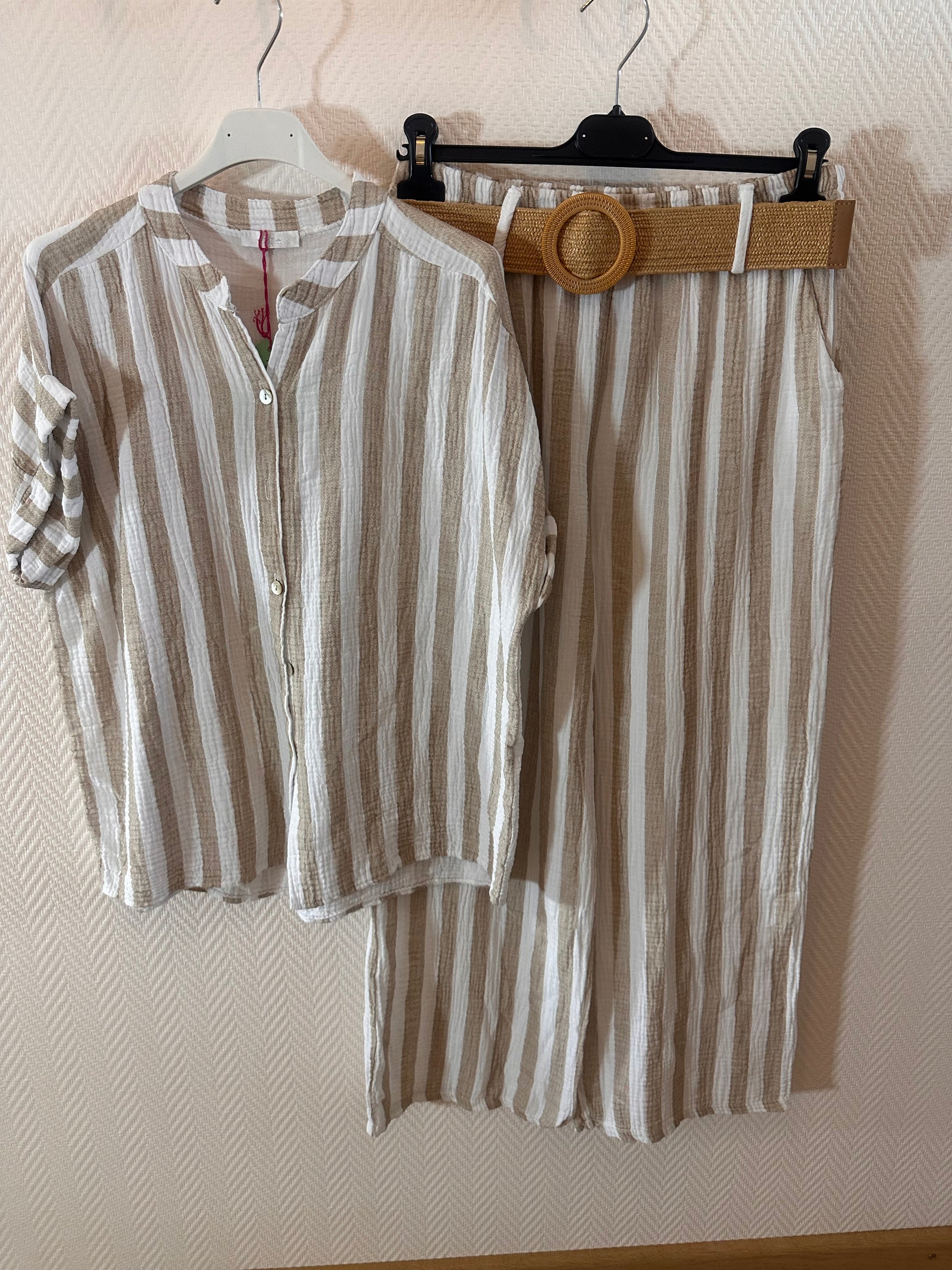 Bringe deinen Sommer-Look mit diesem tollen Hose-und-Bluse-Set im angesagten beige-Ton auf das nächste Level. Perfekt für sonnige Tage und die warmen Temperaturen, um stilvoll und bequem zu bleiben.