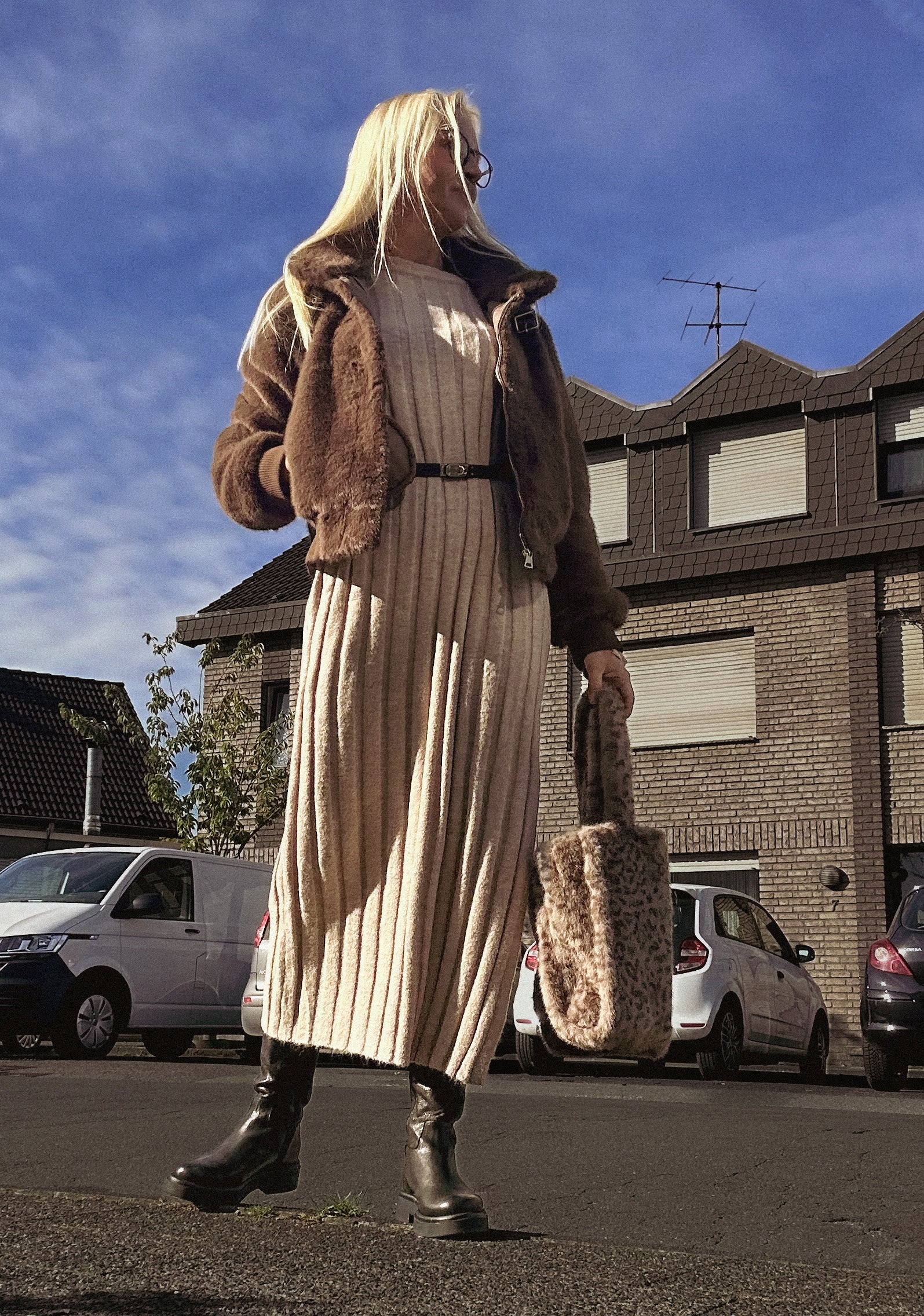 Eleganz trifft Komfort – dieses weiche Strickkleid in edlem Beige schmeichelt der Figur, bietet höchsten Tragekomfort und überzeugt mit stilvollen Details wie seitlichem Beinschlitz und feinen Armschlitzen.
