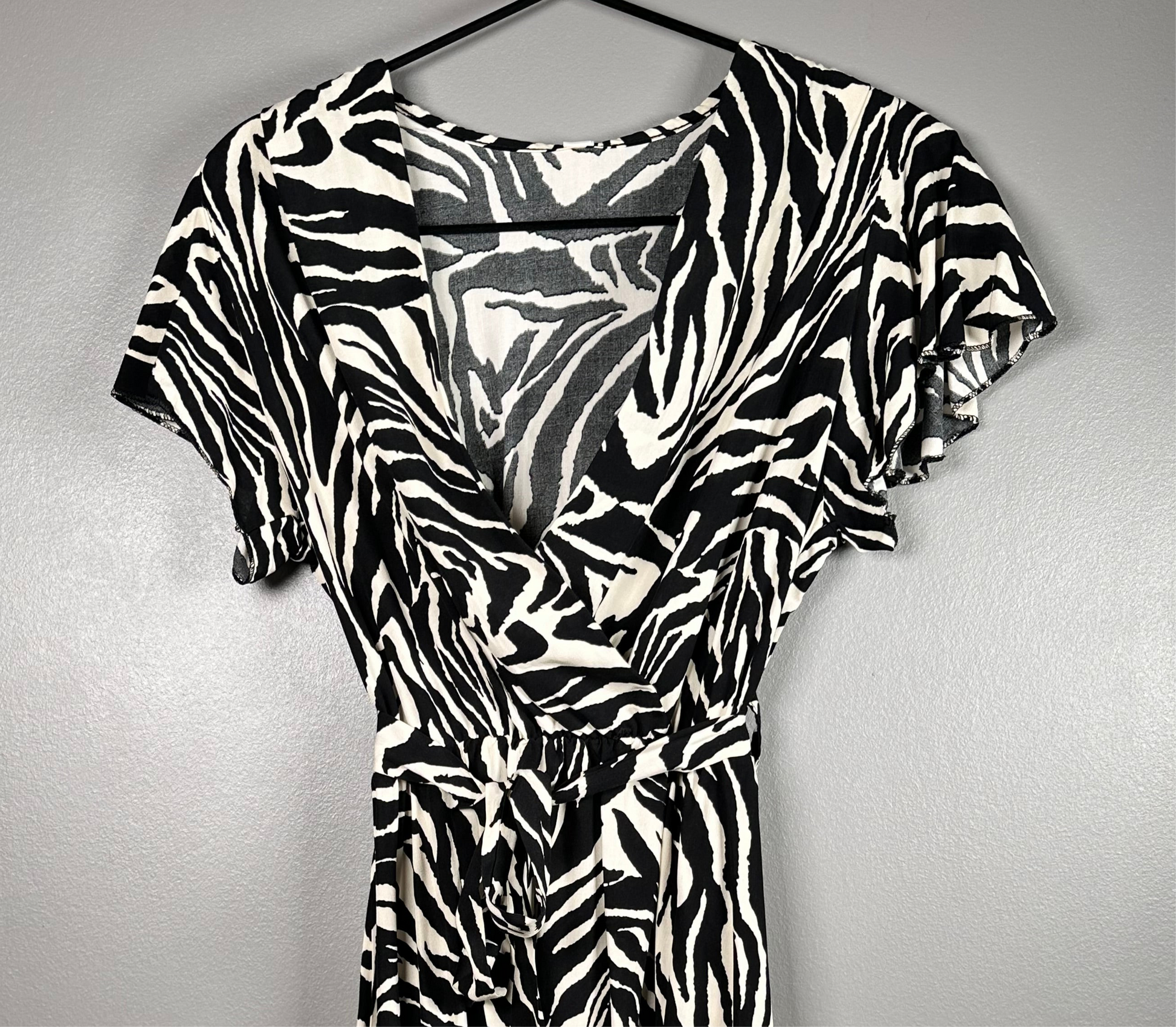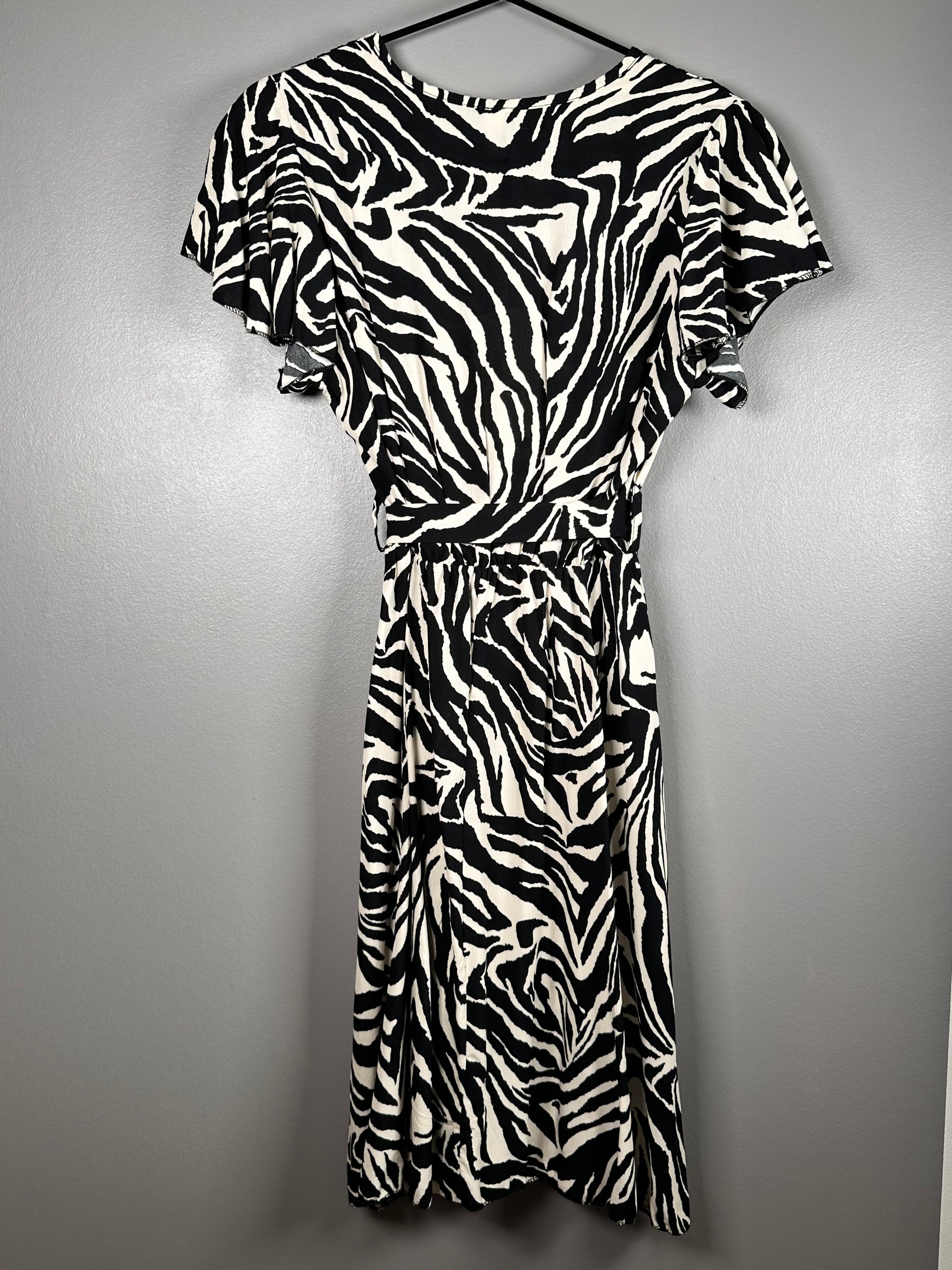 Fühle dich wild in unserem Kleid im Zebra-Look. Mit seinem femininen Schnitt und dem besonderen Design ist es perfekt für jeden Anlass. Zeige deine wilde Seite und sei der Hingucker auf jeder Party!