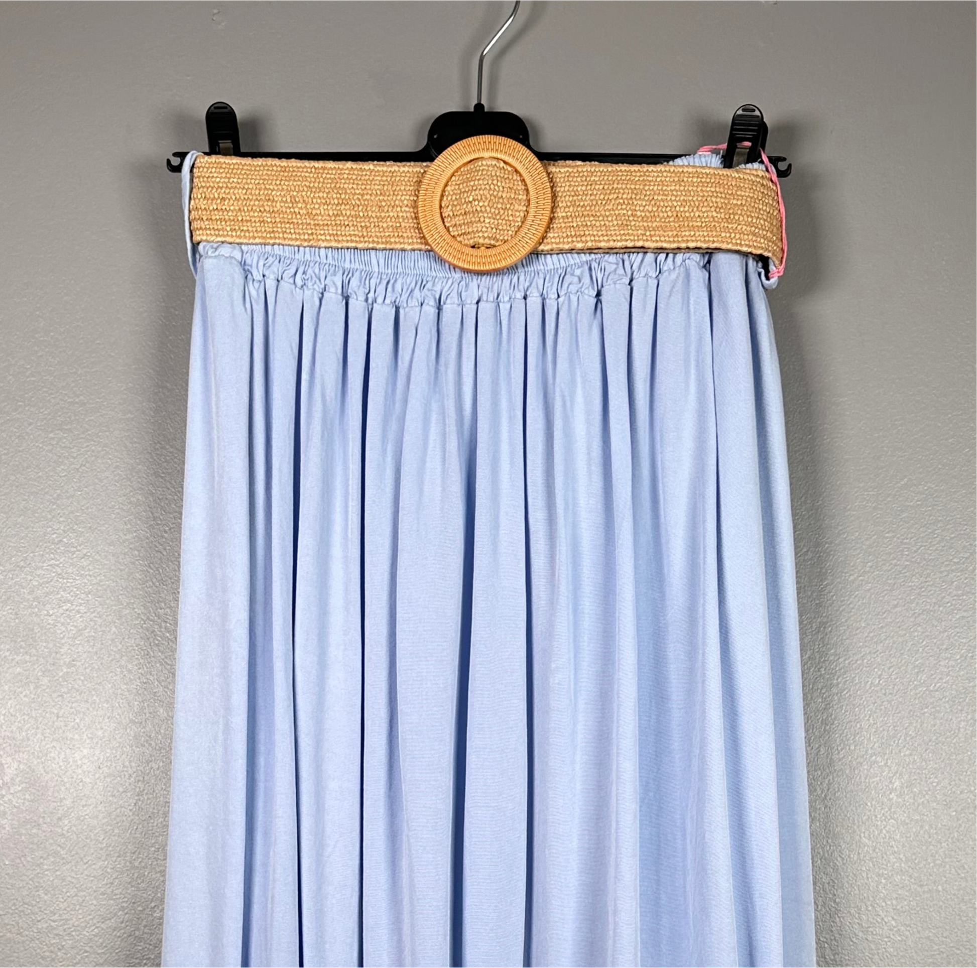 Dieser wunderschöne, leichte Rock aus fließendem Material bietet maximale Bewegungsfreiheit und ist aus einem angenehm weich fallenden Stoff gefertigt. Perfekt für jeden Anlass, fügen Sie Ihrem Kleiderschrank einen Hauch von Eleganz hinzu.