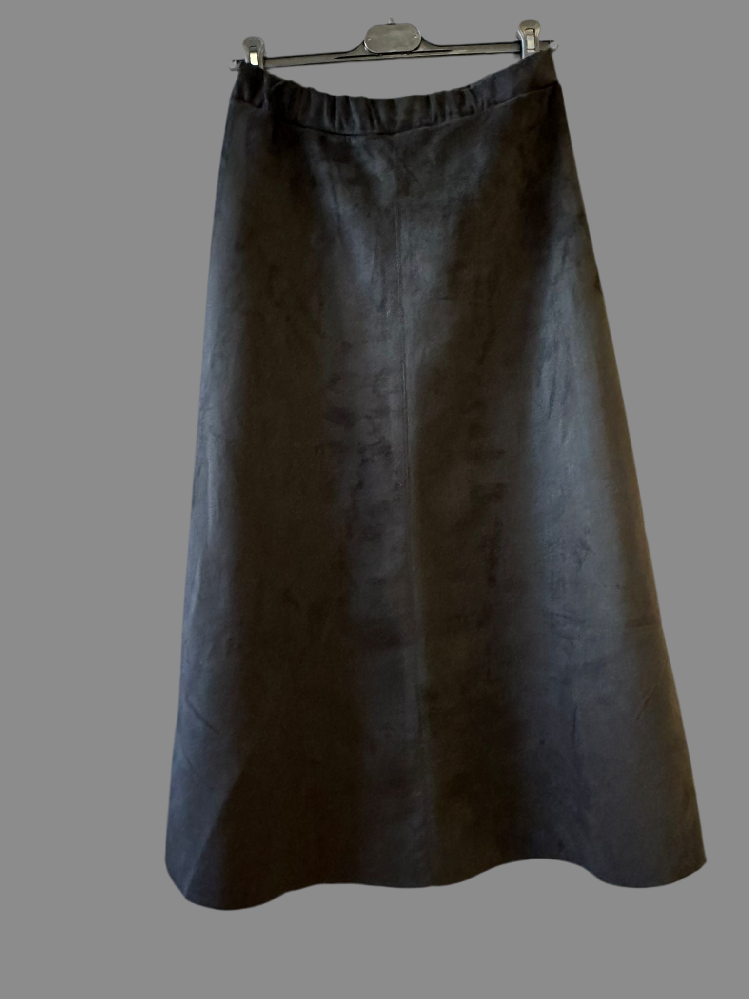 Dieser elegante und weite Rock in schwarzer Velourlederoptik ist ein vielseitiges Must-Have für den Herbst.