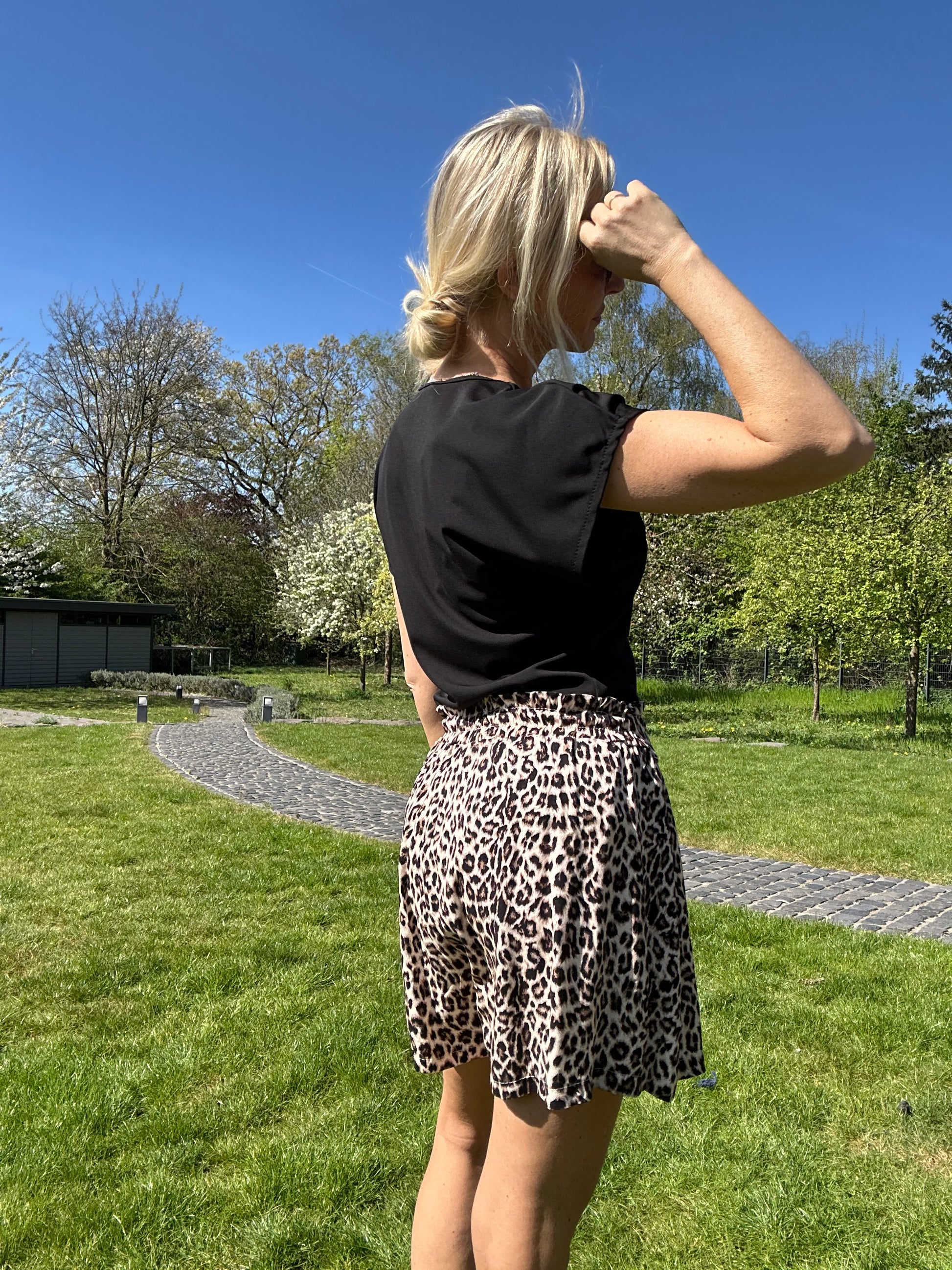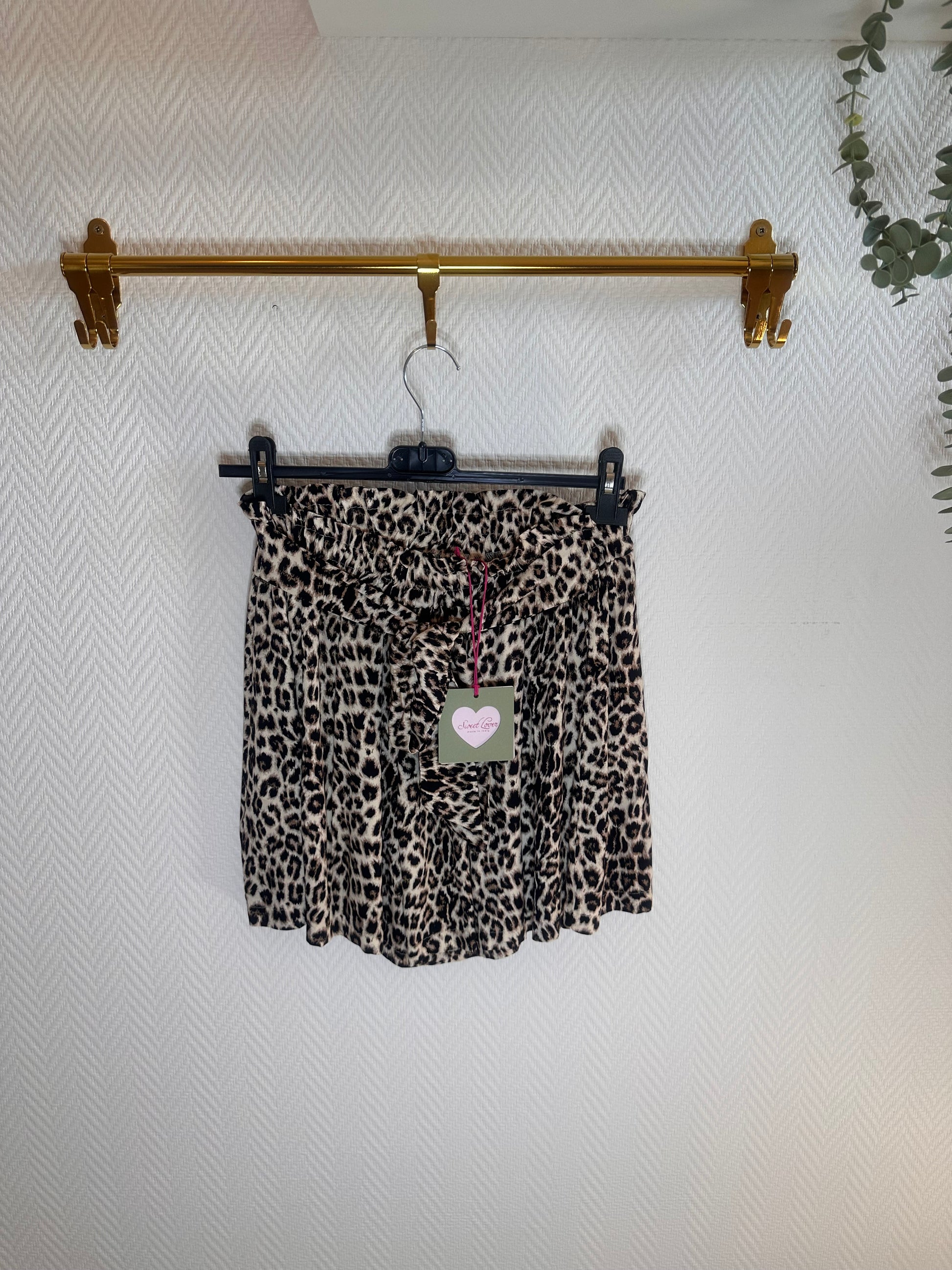 Erlebe den Sommer im Leo-Look mit unserem bequemen Short in onesize. Genieße ein komfortables Tragen und fühle dich modisch gekleidet mit dem angesagten Leopardenmuster. Perfekt für warme Tage und unterschiedliche Größen.