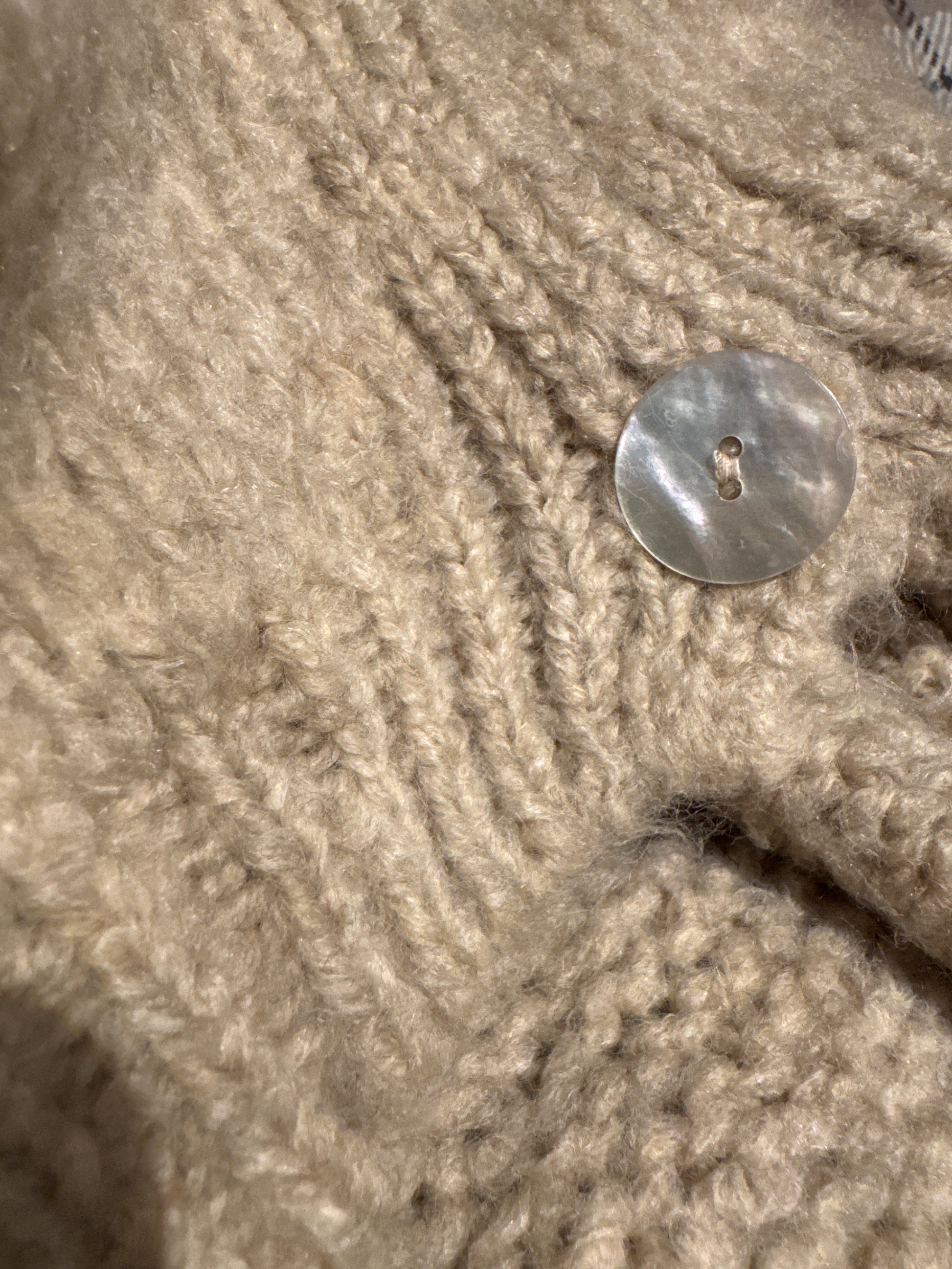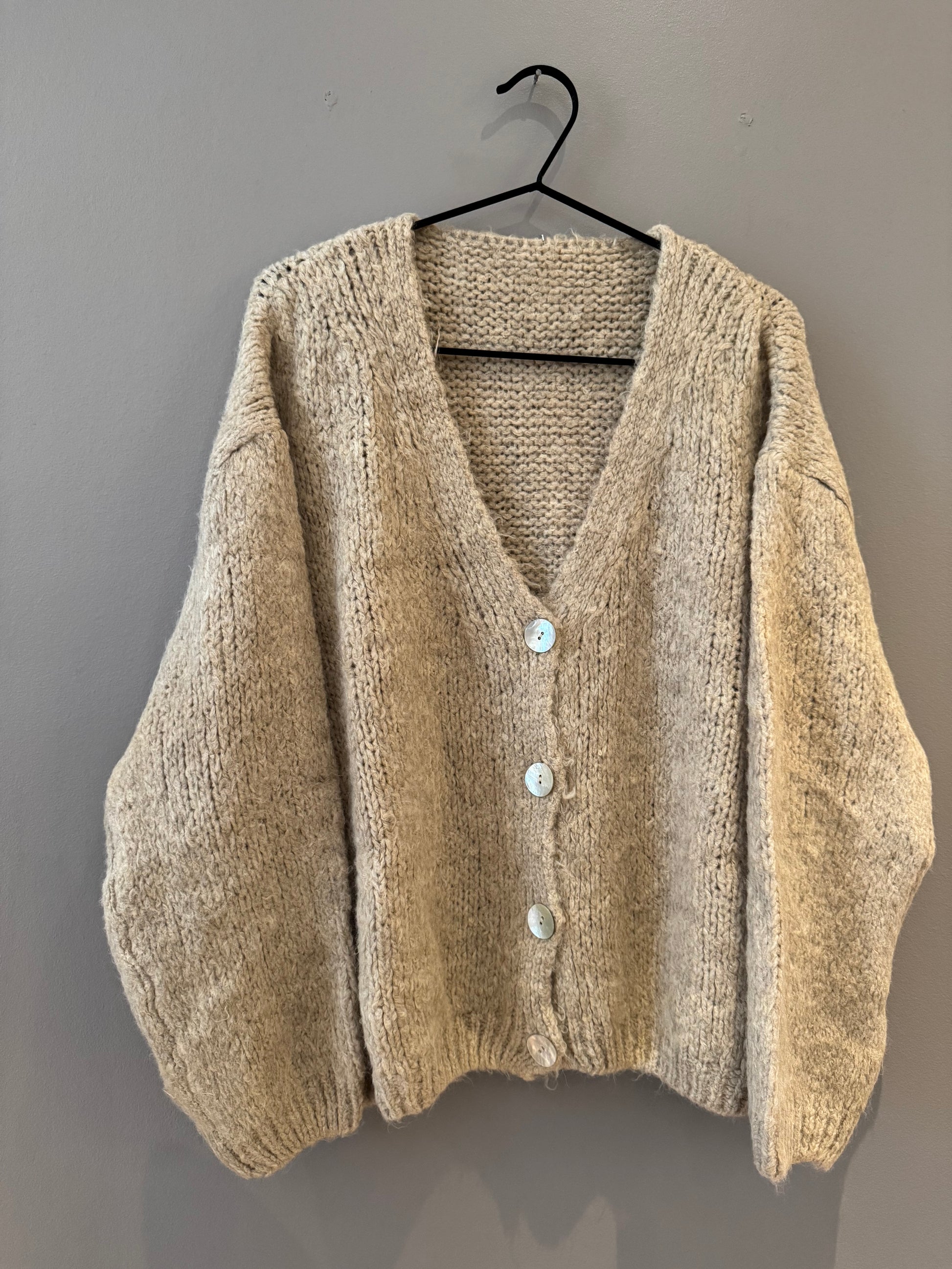 Diese kuschelige kurze Strickjacke in beige ist das perfekte Piece für alle Fälle. Mit ihren perlmuttfarbenen Knöpfen lässt sie sich zu vielen Farben und Styles kombinieren. Sie ist nicht nur warm und gemütlich, sondern auch vielseitig und stilvoll. Ein Must-Have für jeden Kleiderschrank!