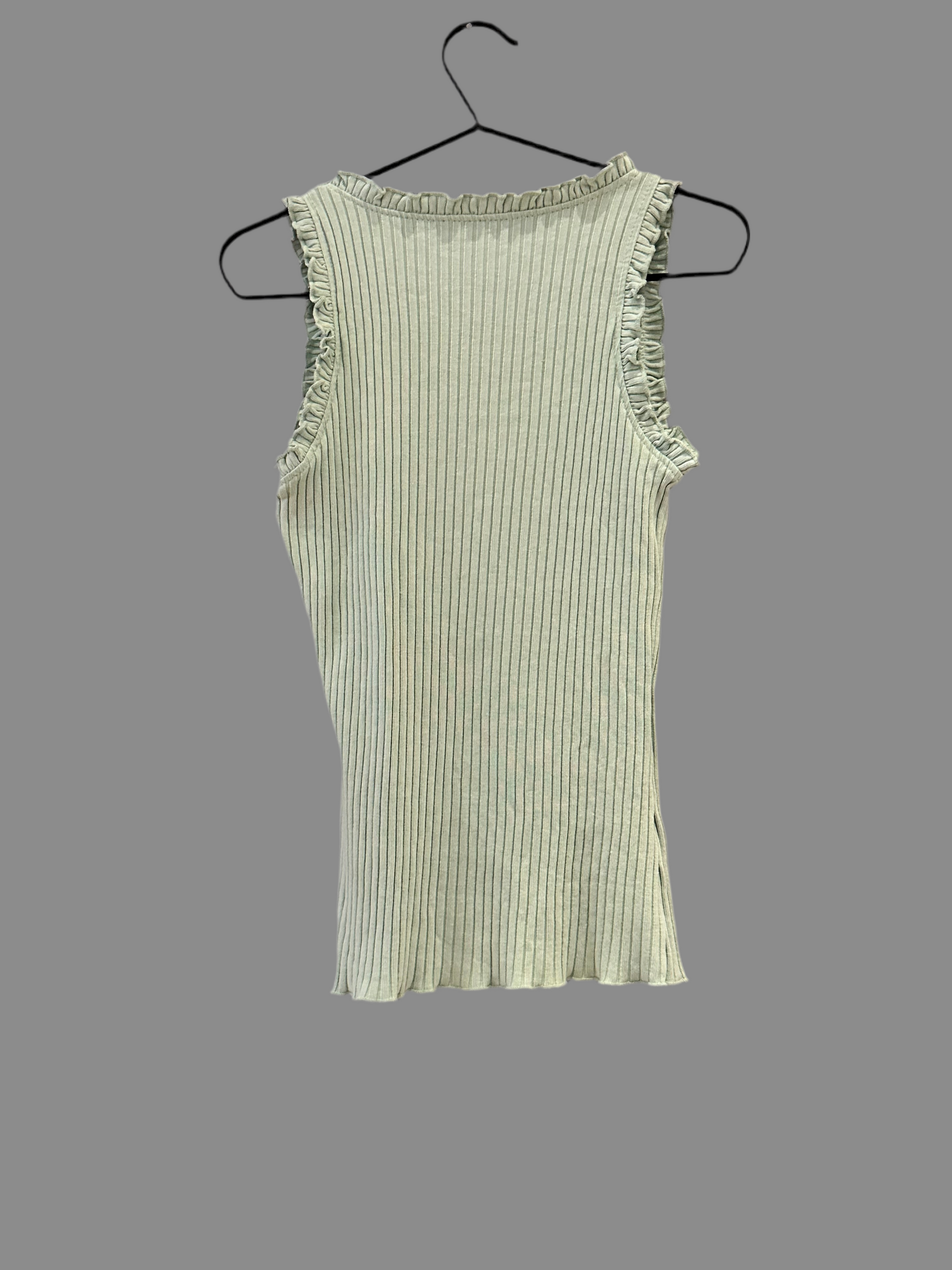 Ein Top mit einem femininen Rüschenrand - das perfekte Basic für deinen Kleiderschrank! Kombiniere es mit einer schicken Hose oder zur Jeans für einen lässigen Look. Leicht und angenehm zu tragen, für den Alltag oder besondere Anlässe. Hol dir jetzt dieses vielseitige Top.