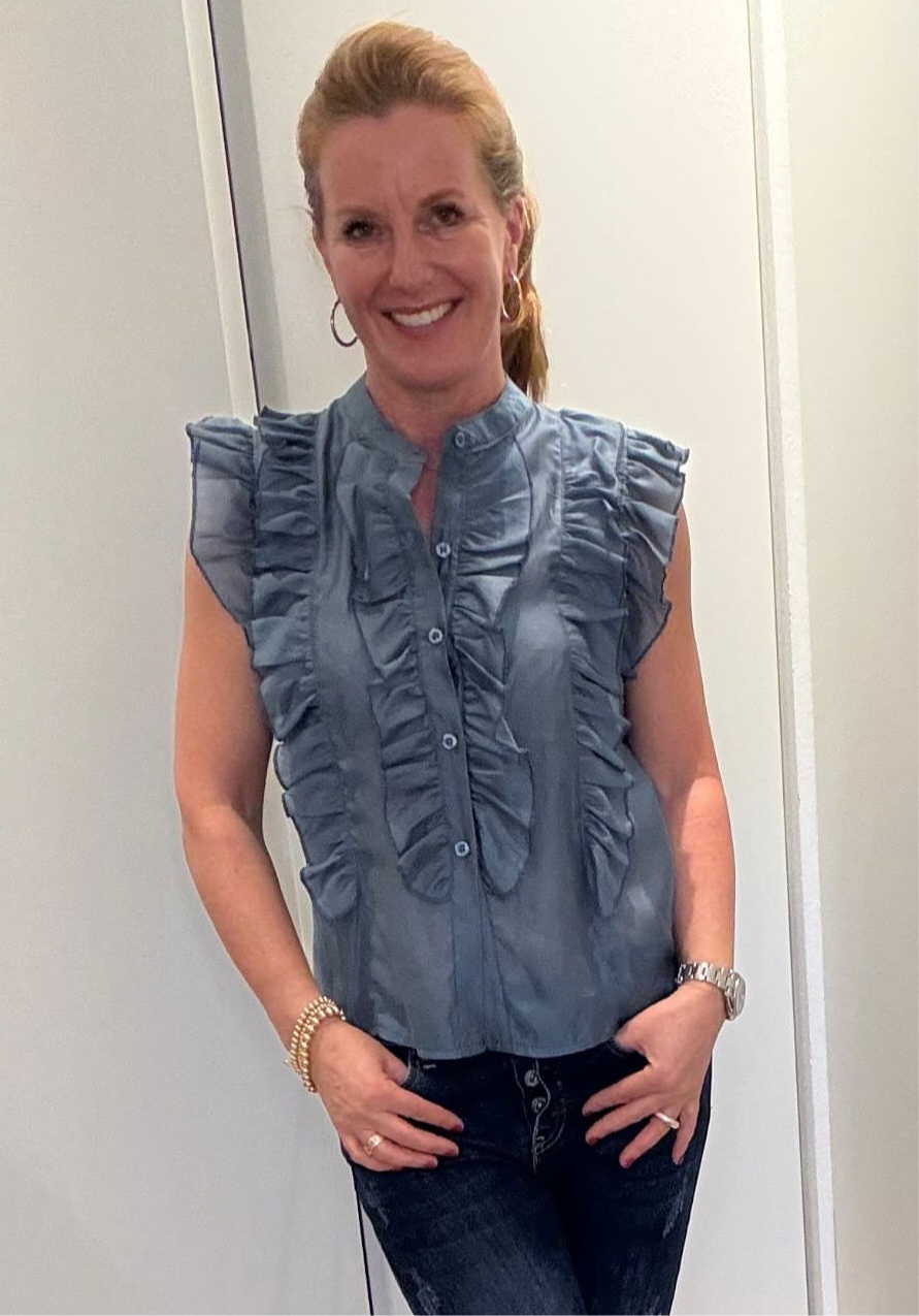 Dieses schöne kurzarm Rüschenbluse ist ein absoluter Hingucker. Sie kann sowohl schick als auch lässig kombiniert werden und passt perfekt zu Jeans, Röcken, Stoffhosen oder Shorts. Sollte in keinem Kleiderschrank fehlen.