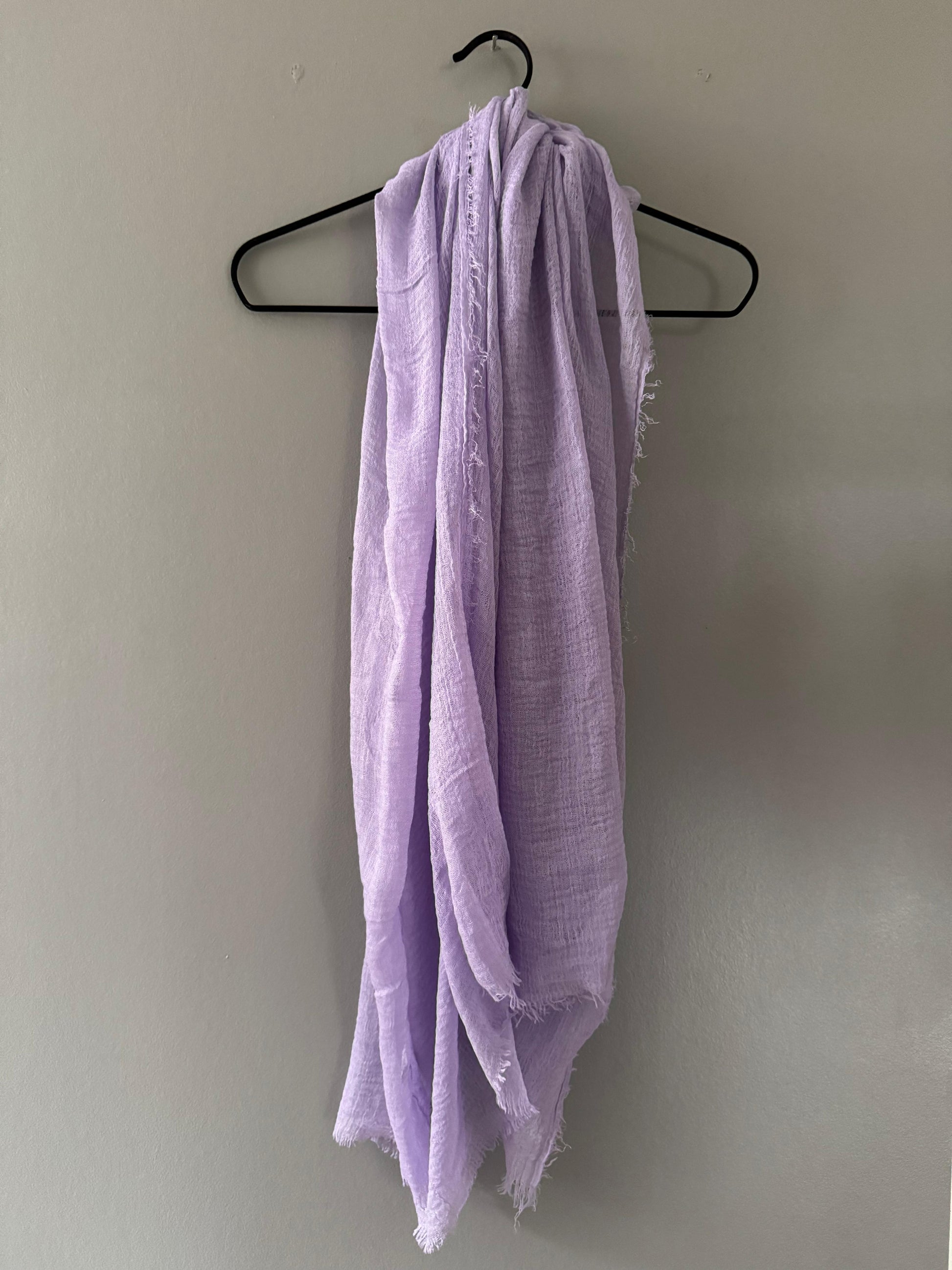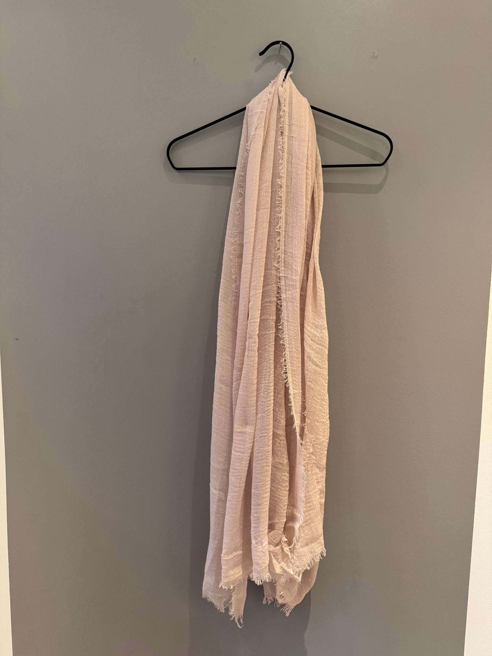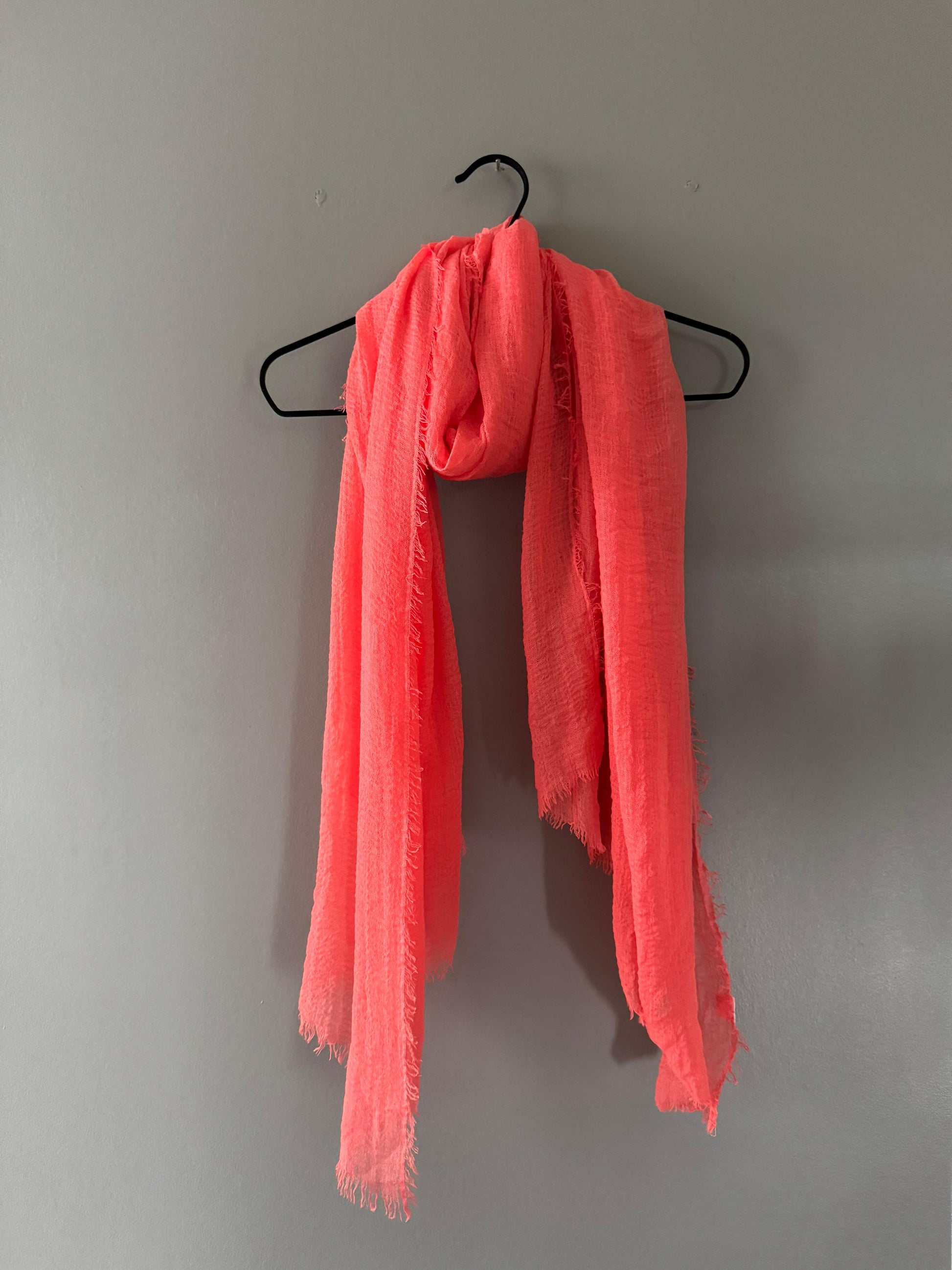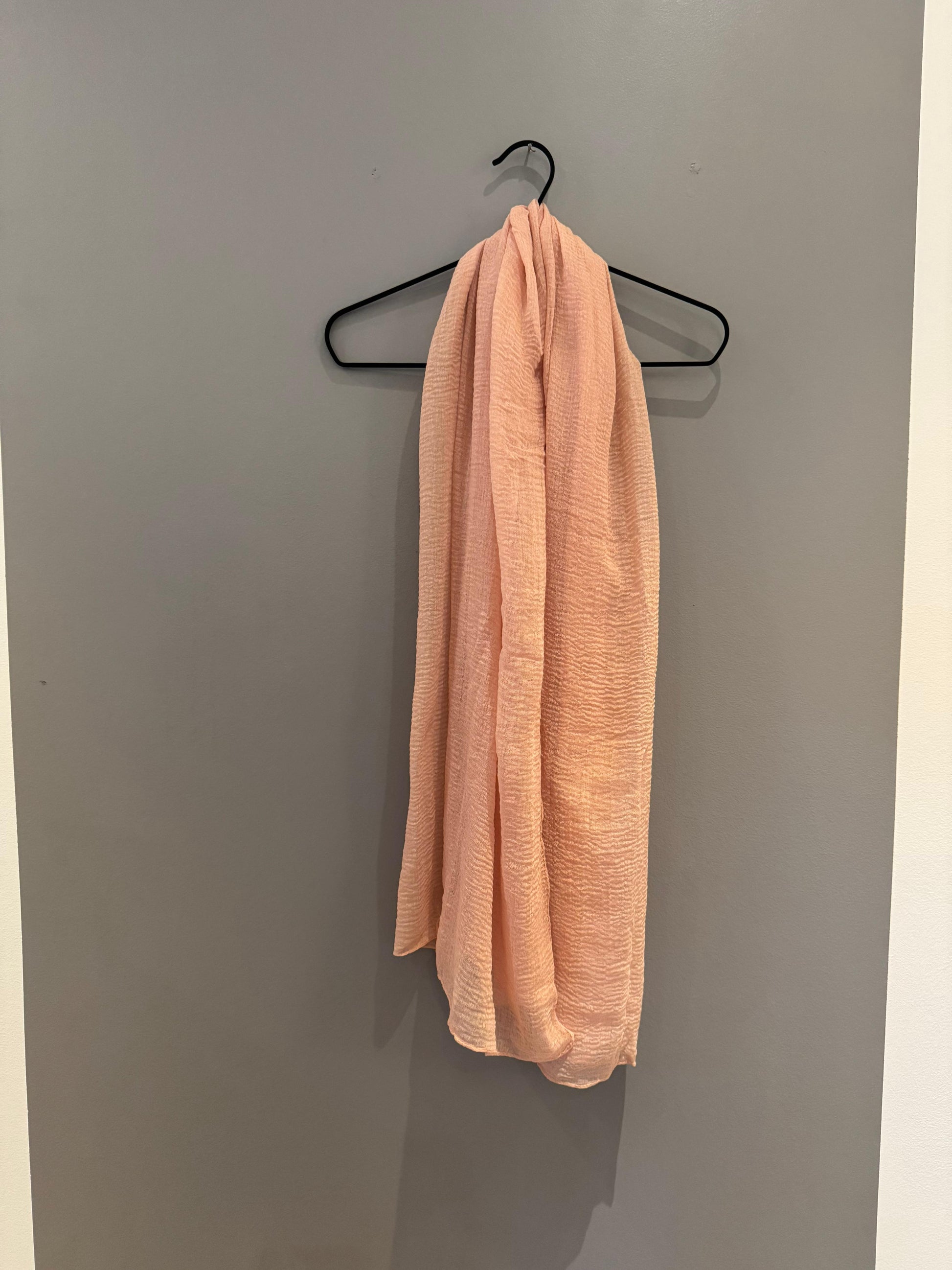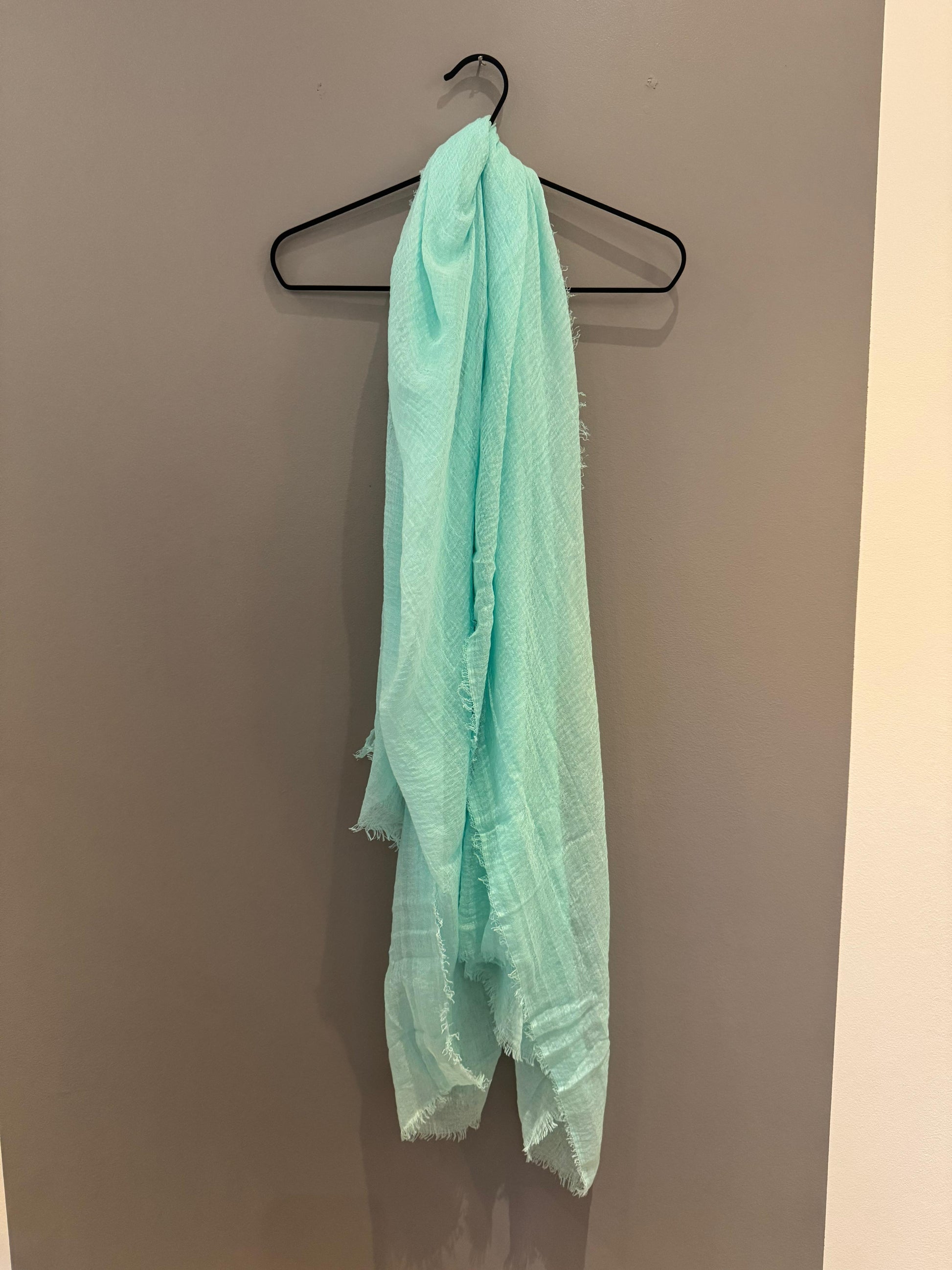 Leichter Schal für alle die sich nicht so gerne dick am Hals einpacken. Der transparente Stoff in aprivat fällt weich und leicht und ist somit auch für kühlere Sommerabende gut geeignet. Mit kleinen Fransen an den Rändern.