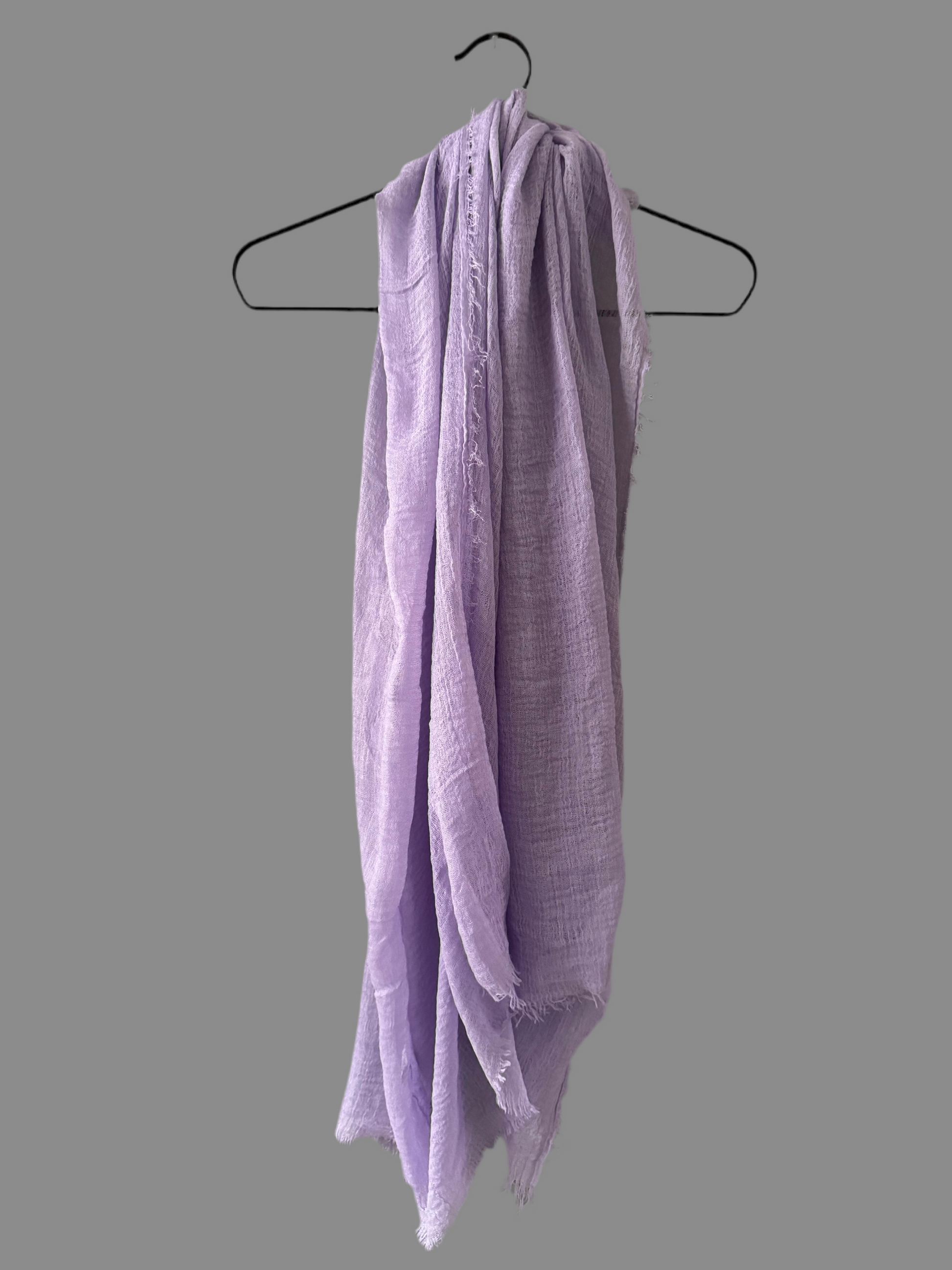 Leichter Schal für alle die sich nicht so gerne dick am Hals einpacken. Der transparente Stoff in aprivat fällt weich und leicht und ist somit auch für kühlere Sommerabende gut geeignet. Mit kleinen Fransen an den Rändern.